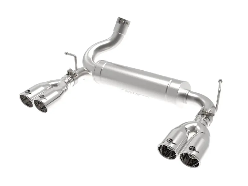 2-1/2″ 409 Stainless Steel Construction: This axle-back exhaust system is constructed of 2-1/2″ mandrel-bent 409 stainless steel tubing for maximum strength and durability. High-Flow 409 Stainless Steel Muffler: This system features a high-flow 409 stainless steel muffler, producing a deep sound.Quad 3-1/2″ Diameter Polished Exhaust Tips: Finishing off this exhaust system are quad 3-1/2″ diameter polished stainless steel clamp-on exhaust tips. The tips features a laser etched aFe POWER logo for a unique style. Installation: Utilizing factory style hangers this system is a direct bolt-on system, which requires no cutting or modifications for a hassle-free installation. Computer-Aided Design: Utilizing state-of-the-art computer-aided design technology, this exhaust system is designed for custom, high tolerance factory fitment. MIG-Welded: 100% MIG-Welded for race-proven strength and durability. aFe POWER exhaust systems are engineered and manufactured in our Corona, California facility.
