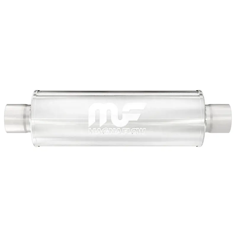 The MagnaFlow 7in. Round Straight-Through Performance Exhaust Muffler 12770 brings our world-famous exhaust sound and dyno-proven performance to your ride in a weight-optimized 7x7x14in. package with a premium satin finish. The straight-through free-flowing design of this round-bodied muffler’s reversible, universal 4/4in. diameter inlet/outlet layout enables versatile installation options to match the spacing requirements of your vehicle. Due to the cutting and welding involved, professional installation is highly recommended. Internally, 12770 utilizes a perforated stainless steel core wrapped in stainless steel mesh and acoustic fiber fill to achieve a powerful, resonant tone. This muffler is made of durable, corrosion resistant stainless steel and produced using cutting-edge CNC precision robotic manufacturing techniques, all backed by MagnaFlow’s limited lifetime construction warranty.