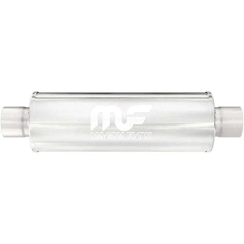 The MagnaFlow 4in. Round Straight-Through Performance Exhaust Muffler 10419 brings our world-famous exhaust sound and dyno-proven performance to your ride in a weight-optimized 4x9x14in. package with a premium satin finish. The straight-through free-flowing design of this round-bodied muffler’s reversible, universal 3/3in. diameter inlet/outlet layout enables versatile installation options to match the spacing requirements of your vehicle. Due to the cutting and welding involved, professional installation is highly recommended. Internally, 10419 utilizes a perforated stainless steel core wrapped in stainless steel mesh and acoustic fiber fill to achieve a powerful, resonant tone. This muffler is made of durable, corrosion resistant stainless steel and produced using cutting-edge CNC precision robotic manufacturing techniques, all backed by MagnaFlow’s limited lifetime construction warranty.