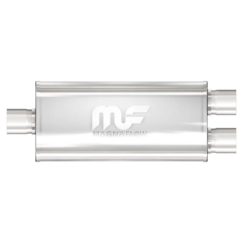 The MagnaFlow 5 X 8in. Oval Straight-Through Performance Exhaust Muffler 12288 is engineered to enhance your ride with a healthy helping of our signature exhaust sound and dyno-proven performance thanks to its free-flowing straight-through perforated stainless steel core wrapped in stainless steel mesh and acoustic fiber fill. The reversible, universal 3/2.5in. diameter inlet/outlet Straight-Through layout allows you to install it in whatever orientation and configuration you see fit. However, professional installation is highly recommended. Muffler 12288s weight-optimized 5x8x18in. oval-shaped body features a satin finish that elevates the overall aesthetics of your current exhaust setup. 12288 is made of durable, corrosion resistant stainless steel and produced using cutting-edge CNC precision robotic manufacturing techniques, all backed by MagnaFlow’s limited lifetime construction warranty.
