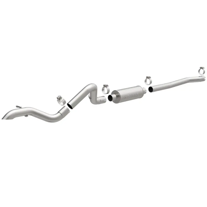 The MagnaFlow Rock Crawler Series Cat-Back Performance Exhaust System 15237 brings superior boulder-climbing capabilities to your 3.6L 2012-2018 Jeep with a weight-optimized, dyno-tested, corrosion resistant and durable stainless steel design engineered to closely hug the undercarriage of your rig for improved ground clearance. Exhaust kit 15237 is engineered to produce our powerful, resonant signature exhaust note at Aggressive exterior and Moderate interior sound levels. Extensive 3D scanning was used during the development of this Jeep exhaust system to create a direct-fit design, enabling a do-it-yourself installation process. 15237’s emissions-legal cat-back design replaces all your rig’s exhaust components from the catalytic converter on back with its 2.5in. diameter mandrel bent main piping that passes through 1 Straight-Through mufflers before ending in a Single Straight Driver Side Rear exit. The turndown style tipless exit improves departure angles, allowing for more options when it comes to traversing tricky boulders and other off-road obstacles. Exhaust system 15237 is produced using advanced CNC precision robotic manufacturing techniques and backed by MagnaFlow’s limited lifetime warranty.