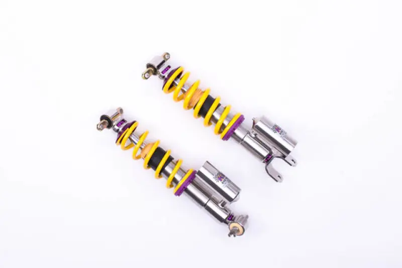 Cutting-edge motorsports technology for more performance on the road. Like every suspension product developed by KW automotive, the suspension manufacturer, and manufactured in Germany, the KW V3 Coilover suspension kit also provides a significant plus in safety reserves in road traffic. Thanks to the chassis with its high-quality dampers, springs, and elastomer spring elements, pitching and rolling movements during load changes such as evasive maneuvers, cornering, acceleration, and braking are significantly reduced. The braking distances are also shortened. Thanks to improved support and feedback, drivers not only feel safer but driving in everyday life becomes even safer. With compression and rebound stage damping, that can be set separately and independently of each other, the damper setup can be customized to your personal driving preferences or vehicle changes such as weight, tire characteristics, or altered vehicle rigidity. True performance optimization is only possible with this unique, patented system. For example, this allows the compression damping force to be increased and get more grip from the tires, to improve cornering behavior and reduce squat without simultaneously altering the rebound stage damping which is optimally matched to the spring rate, a scenario which results in reduced grip and the associated loss of performance. The KW V3 coilover kit is the ideal tool for performance-oriented drivers and experienced tuning enthusiasts who place a strong emphasis on the overall performance of their suspension. The Variant 3 features patented TVR-A and TVC-A technology that provides separately adjustable rebound and compression damping. The extensive adjustment range of the independently configurable rebound and compression make it easy to directly influence the steering behavior, directional stability, grip and handling characteristics for confident and repeatable results at the limit of driving dynamics.