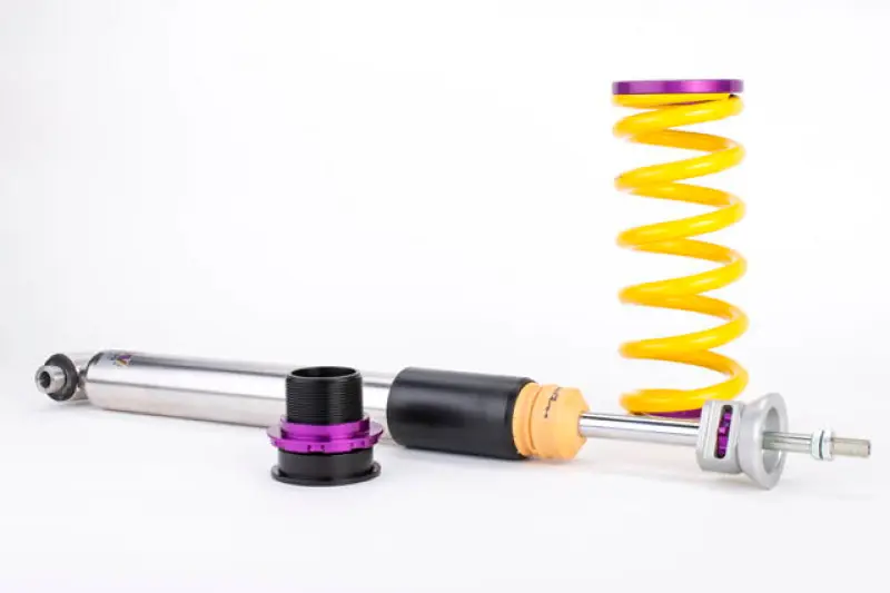 Cutting-edge motorsports technology for more performance on the road. Like every suspension product developed by KW automotive, the suspension manufacturer, and manufactured in Germany, the KW V3 Coilover suspension kit also provides a significant plus in safety reserves in road traffic. Thanks to the chassis with its high-quality dampers, springs, and elastomer spring elements, pitching and rolling movements during load changes such as evasive maneuvers, cornering, acceleration, and braking are significantly reduced. The braking distances are also shortened. Thanks to improved support and feedback, drivers not only feel safer but driving in everyday life becomes even safer. With compression and rebound stage damping, that can be set separately and independently of each other, the damper setup can be customized to your personal driving preferences or vehicle changes such as weight, tire characteristics, or altered vehicle rigidity. True performance optimization is only possible with this unique, patented system. For example, this allows the compression damping force to be increased and get more grip from the tires, to improve cornering behavior and reduce squat without simultaneously altering the rebound stage damping which is optimally matched to the spring rate, a scenario which results in reduced grip and the associated loss of performance. The KW V3 coilover kit is the ideal tool for performance-oriented drivers and experienced tuning enthusiasts who place a strong emphasis on the overall performance of their suspension. The Variant 3 features patented TVR-A and TVC-A technology that provides separately adjustable rebound and compression damping. The extensive adjustment range of the independently configurable rebound and compression make it easy to directly influence the steering behavior, directional stability, grip and handling characteristics for confident and repeatable results at the limit of driving dynamics.