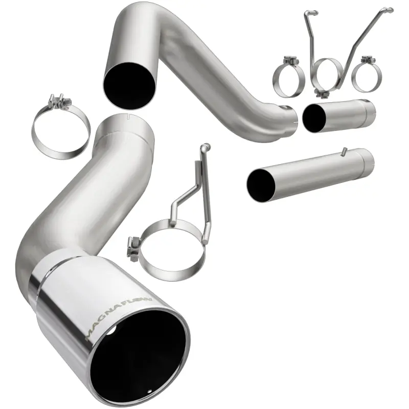 The MagnaFlow Ram PRO DPF Series 17874 utilizes it’s weight-optimized, durable, corrosion resistant stainless steel design to enhance your truck with MagnaFlow’s signature sound and dyno-tested performance. 17874’s 5in. diameter mandrel bent main piping features a muffler delete and terminates in a Single Passenger Side Rear exit with 6in. Polished Welded-Single Wall-Angle Cut-Rolled Edge-Intercooled tips. This emissions-legal filter-back exhaust kit has been tuned to create Mild interior and Moderate exterior sound levels. Exhaust system 17874 is emissions-legal and produced using CNC precision robotic manufacturing techniques that result in a direct-fit design that you can install yourself, all backed by MagnaFlow’s limited lifetime warranty.