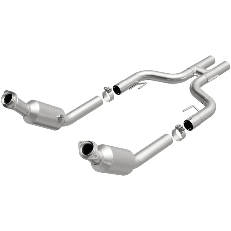 Keep the check engine light off with MagnaFlow HM Grade Federal/EPA Compliant Direct-Fit Catalytic Converter 24151. With features including free-flowing mandrel-bent tubing and highly corrosion resistant stainless steel construction, easily install this spun body converter yourself using the proper tools, no cutting or welding required. MagnaFlow’s state-of-the-art metrology department uses the latest 3D scanning systems during research and development, so you can be confident that your new part will fit and function like the original equipment. By replicating the OE spun body design, the single laser fusion weld greatly reduces the possibility of a leak, and our compact, low-mass design also allows for greater thermal efficiency. This direct-fit catalytic converter is designed specifically for the 2005-2010 Ford Mustang and interchanges with OE parts 4R3Z-5F250-C and 4R3Z-5F250-GA, among others. Hardware is included to eliminate the hassle of working with corroded factory parts. This replacement part is designed to meet or exceed Federal emissions requirements set forth by the EPA, complying with legal standards for OBDII Federally registered vehicles with Federal/EPA Emission systems.