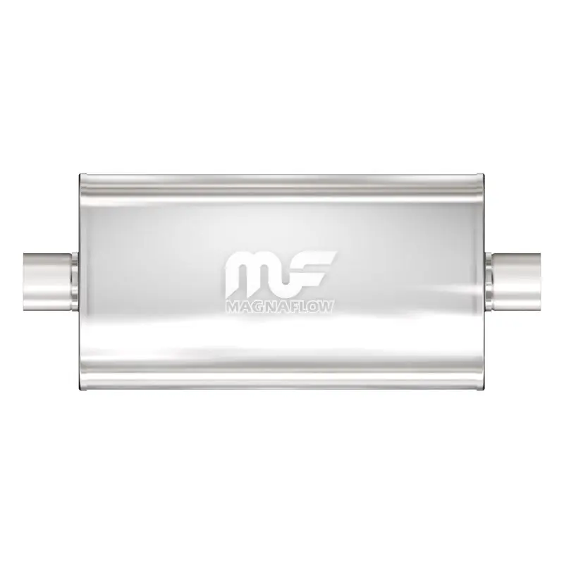 The MagnaFlow 5 X 11in. Oval Straight-Through Performance Exhaust Muffler 12579 is engineered to enhance your ride with a healthy helping of our signature exhaust sound and dyno-proven performance thanks to its free-flowing straight-through perforated stainless steel core wrapped in stainless steel mesh and acoustic fiber fill. The reversible, universal 3/3in. diameter inlet/outlet Straight-Through layout allows you to install it in whatever orientation and configuration you see fit. However, professional installation is highly recommended. Muffler 12579s weight-optimized 5x11x22in. oval-shaped body features a satin finish that elevates the overall aesthetics of your current exhaust setup. 12579 is made of durable, corrosion resistant stainless steel and produced using cutting-edge CNC precision robotic manufacturing techniques, all backed by MagnaFlow’s limited lifetime construction warranty.