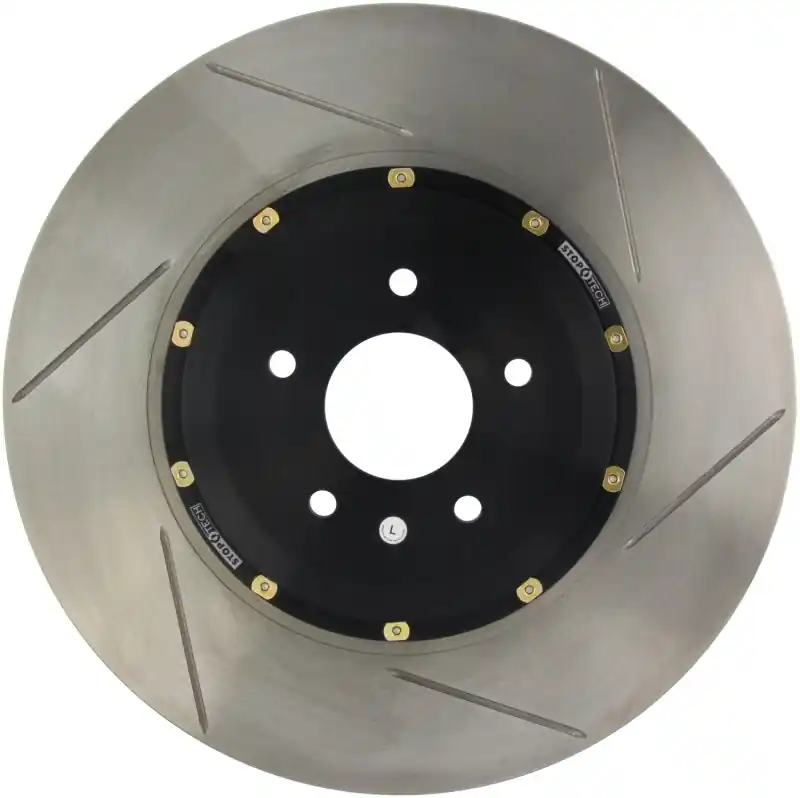 StopTech AeroRotor Replacement Kits ARK are designed to replace your vehicle’s original factory rotors; while retaining the factory brake calipers. Although the ARK is the same diameter and thickness as the factory rotors; it offers improved cooling; braking; and handling. The directional; floating AeroRotors allow independent expansion of the rotor and hat without “coning;” thanks to elongated drive pin holes. ARK components include AeroRotor friction rings with patented internal vane design; pre-assembled to billet aluminum AeroHats with directional stand-offs that optimize cooling airflow. The patented AeroRotor vane design pushes up to 80 percent more air than factory rotors for better cooling and reduced fade on the track. The aircraft-grade aluminum hats and 2-piece AeroRotors are up to 8 pounds lighter than stock rotors; allowing faster acceleration and deceleration; and improved handling. StopTech AeroRotors are available slotted or cross-drilled. These slots or holes allow better dissipation of heat; friction material and debris; assuring that fresh pad material is in contact with the rotor every time the brakes are applied. An optional anti-corrosion; zinc finish is available for customers in cold climates; where salt and chemicals are used to melt snow and ice. The zinc coating also benefits customers who prefer no visible surface rust on the vanes and outer circumference of the rotors. StopTech AeroRotors are 100 percent made in the USA.
