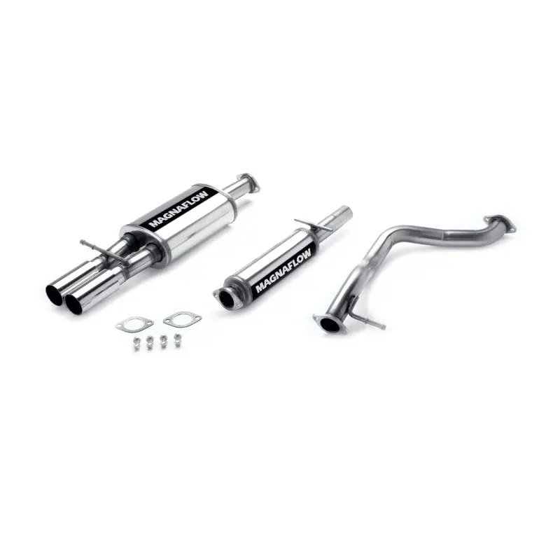 The MagnaFlow Touring Series Cat-Back Performance Exhaust System 15745 is the perfect partner for your 1.8L, 2.8L 1999-2005 Volkswagen to take on a grand tour or a weekend cruise thanks to the powerful, resonant exhaust note and dyno-proven performance it brings to the table. This durable, corrosion resistant stainless steel exhaust kit is engineered to conquer the miles with ease while enhancing your driving experience with Moderate exterior and Mild interior sound levels generated through its fast-flowing, mandrel bent 2.25in. main piping and 2 Straight-Through muffler that terminate in a Dual Straight Driver Side Rear exit with 3in. Polished Welded-On Double Wall Straight Cut Rolled Edge tips. 15745 features a cat-back layout design to replace your import’s stock exhaust components from the catalytic converter on back. This Volkswagen exhaust system is compatible with 1999-2005 engines. The use of extensive 3D scans made during the development process has resulted in an easy-to-install, direct-fit design that fits your Volkswagen like a glove. 15745 is produced using CNC precision robotic manufacturing techniques and is backed by MagnaFlow’s limited lifetime construction warranty.